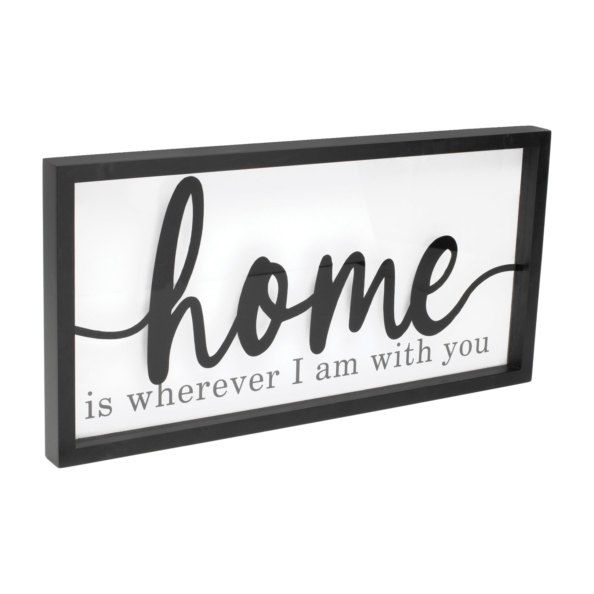 Welcome guests to your home with this stunning Home Sign. Featuring the sentiment, "Home is Wherever I am with You", the classic black and white tones paired with the elegant script and frame accent are perfect to create a memorable display. The quality wood and acrylic composition is sure to endure for seasons to come. Display the piece above your mantle or couch to share the message with guests or gift it to a friend to spread the love.